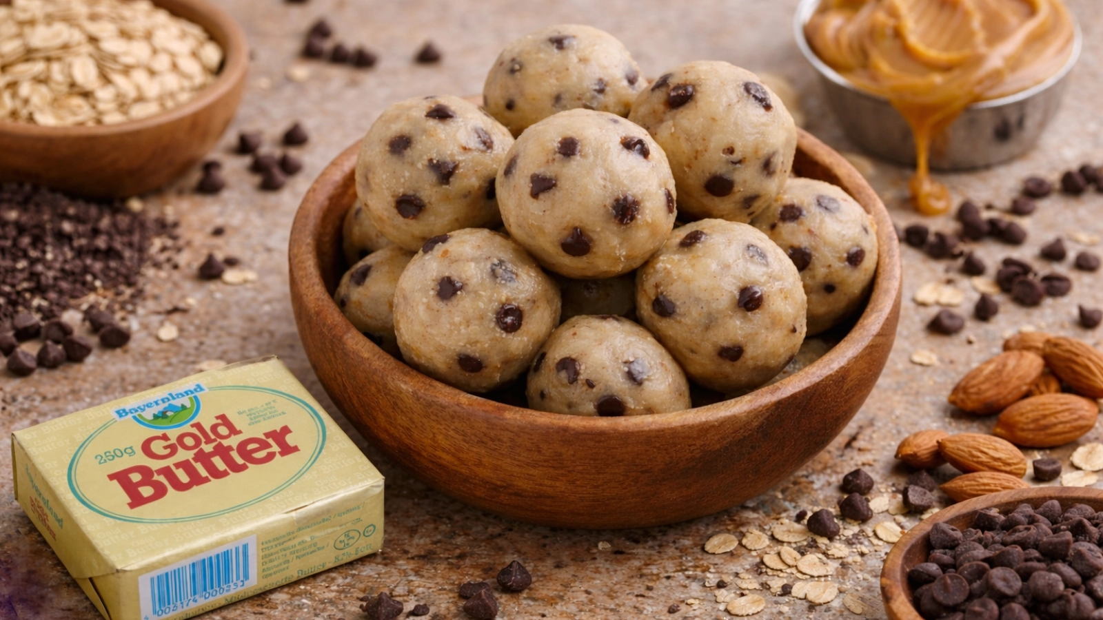 Sastojci: 45 g Bayernland maslaca 60 g blanširanih, mljevenih badema 25 g šećera 50 g Mascarpone sira 20 g ulja 40 g mini čokoladnih kapljica 1-2 kapi arome vanilije